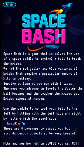 Grab your space paddle and get ready for a cosmic challenge! Your mission: control the ball, break the bricks, and survive as long as you can.